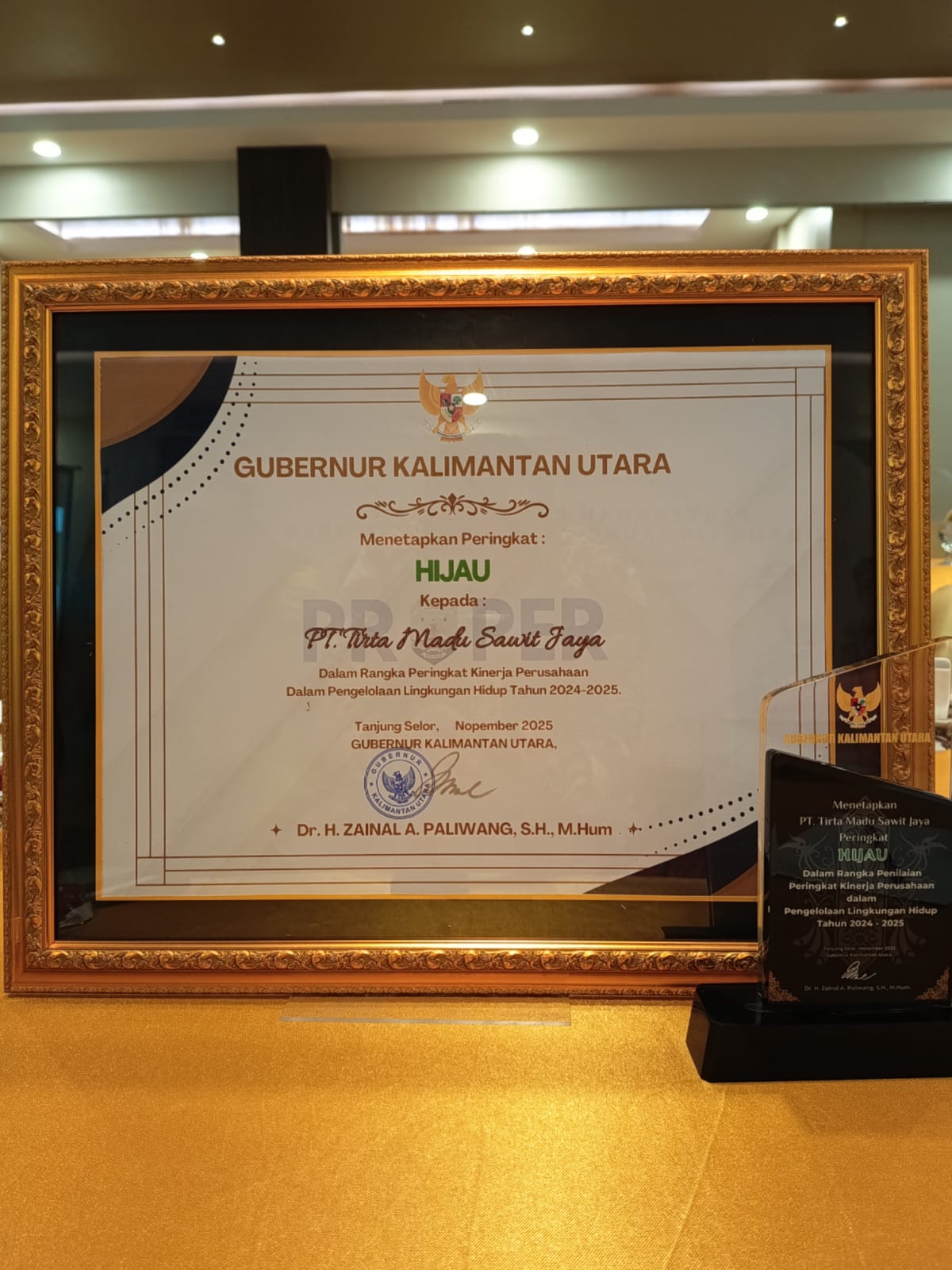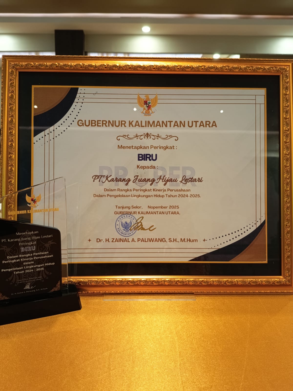 Congratulations to PT Karangjuang Hijau Lestari (KHL) for achieving a Blue PROPER rating and to PT Tirta Madu Sawit Jaya (TMSJ) for successfully achieving a Green PROPER rating at the 2025 Environmental Awards Ceremony. The event, themed “Active Multi-Stakeholder Collaboration in Achieving Climate-Resilient Environmental Transformation,” was held in Tanjung Selor on December 23, 2025.